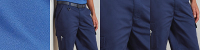 Hard-wearing, durable workwear shorts for men. Belt loops and metal button to the waistband and covered YKK zip for secure fastening. The left belt loop has a plastic triangle ring for affixing tools. Two open side pockets. The upper left leg carries a mobile-friendly hook and loop flap-sealed pocket with combined pen slot, while the right leg also features a handy flap-sealed pocket. Single patch pocket to the reverse. Made with certified recycled polyester.