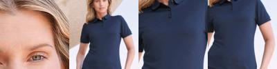 Polo shirt made from recycled polyester yarn with wicking properties. Regular fit with three-button placket. Henbury stand-up collar. 1x1 ribbed collar and cuffs. Dyed-to-match buttons. Female fit with shaped side seams. Henbury cut-out label for easy rebranding.
