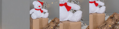 The Christmas Zippie bear has a zip around the bottom to allow direct access for decoration. Removable inner stuffing. Sewn eyes and mouth. Red knitted scarf with red Christmas hat over one ear. Suitable for all ages. Complies with EN71 regulations.