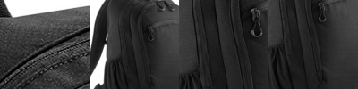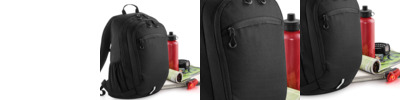 TearAway label for ease of rebranding. Laptop compatible up to 15.6'. Dual compartment design. Padded laptop compartment. Reflective accents. Two mesh pockets/ water bottle holders. Zippered front pocket. Internal mesh pocket. Ergonomic padded back panel. Padded adjustable mesh shoulder straps. Adjustable chest straps. Grab handle. Reach certified.