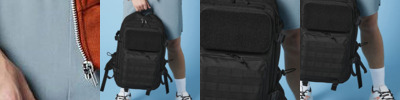Military-inspired design. MOLLE webbing loop detail. Large main compartment. Padded laptop compartment, compatible up to 17'. Full Rip-Strip™ front pocket for optimal decoration. Three large zipped front pockets. Dual tight-knit stretch mesh bottle pockets, capable of holding 750ml bottle shakers. Internal mesh pockets. Padded back panel. Large top carry handle. Compression straps. Ergonomically designed straps for everyday comfort. Fully adjustable chest strap. Compatible with Rip-Strip™ patches BG840 and BG841. Compatible with Modulr™ multi pockets BG241 and BG242. TearAway label for ease of rebranding.