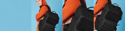 - Three large zippered front pockets