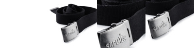 Tough, reinforced cotton belt with distressed look. Adjustable with clip fastening for easy adjustment. Scruffs-branded metal buckle. One size fits all. Certified Sedex.