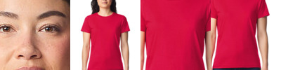 Made with our soft ringspun cotton and cotton blends, the Softstyle™ midweight women’s t-shirt features high stitch density fabric that offers a smooth printing surface, ideal for DTG. Ringspun fabric feels great against your skin. Non-topstitched, narrow width, rib collar. Taped neck and shoulders for comfort and durability. Semi-fitted, side-seamed body. High-performing black tear-away label.