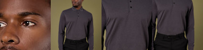 1x1 Rib flat knit collar. 2X2 Rib cuffs with lycra. Twin needle stitched shoulders, armholes and cuffs. 3 Button narrow placket. Side vents. Reinforced shoulder seams. Spare button. Kustom Kit® woven back neck label.
