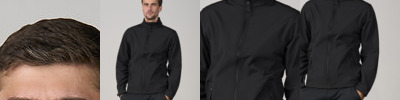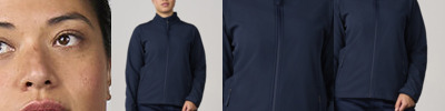 Two layer bonded softshell jacket with full zip front fastening. Relaxed fit. Two front zipped side pockets. Chin guard with internal storm flap. Adjustable shockcord hem.
