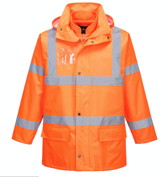 This superb 5-in-1 jacket system is adaptable for any work situation. Outer jacket features 2 large roomy pockets, stud adjustable cuffs and concealed attached roll-away hood. Inner jacket has fluorescent fleece sleeves, comfortable knitted cuffs and 2 side pockets. Both the inner and outer jacket have full EN ISO 20471 Class 3 certification for maximum high visibility protection and safety.