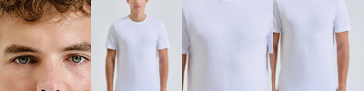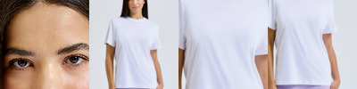 Organic cotton fabric. Crew neck. Short sleeve. Lightweight. Twin-needle stitching on hem and arms. The product contains no branded neck or waist label. Removable kimble or looped garment tags. The inner seam label holds important product information on one label with a second label containing brand information which can be cut-away.