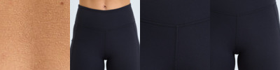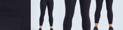 7/8 length leggings (1/8 shorter than full-length). Soft stretch. Recycled fabric. Elasticated self-fabric waistband. Two pockets to each leg. The product contains no branded neck or waist label. Removable kimble or looped garment tags. The inner seam label holds important product information on one label with a second label containing brand information which can be cut-away. We recommend using block out vinyl and inks.
