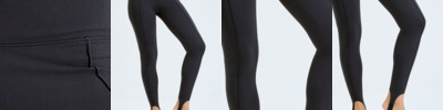 Full-length leggings. Soft-stretch fabric. Self-fabric waistband. Seam detail through centre. Elasticated stirrup design to feet. The product contains no branded neck or waist label. Removable kimble or looped garment tags. The inner seam label holds important product information on one label with a second label containing brand information which can be cut-away. We recommend using block out vinyl and inks.