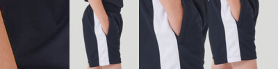 Kids’ shorts with elasticated waist and inner drawcords. Zipped side seam pockets. Twin-needle stitched hem. Amfori BSCI accredited.