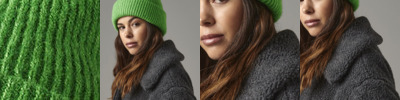 Contains 100% certified recycled polyester. One-piece knit. Luxury soft-touch yarn.