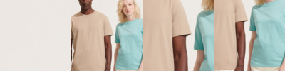 50% recycled cotton/50% cotton.* Ribbed collar. Taped neck. Tubular body. Twin needle stitching. Unbranded size label at neckline.