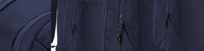 100% recycled T400D polyester. Carry handles. Main zip compartment with two way zip. Front zip pocket. Side pockets with drawcord adjuster. Laptop compartment, compatible up to 16". Internal zip and slip pockets. Tear out label. Capacity 21 litres.