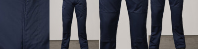 Traditional waistband with belt loops and regular front swing pockets. Conceal zip fly. Two cargo pockets on both legs. One back open pocket. Knee pad pockets with tear and release fastening.