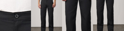 Clean, modern workwear trouser with two front pockets, one patch pocket at seat and waistband with belt loops. Made from a durable poly/cotton blend fabric.