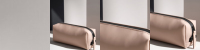 Water-repellent fabric. Minimalist styling. Wide loop keyring. Wristlet strap. Painted edges. Designed for decoration. 100% Recycled polyester.