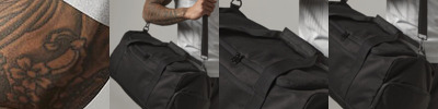 Water-repellent fabric. Minimalist styling. Two-way zipped opening for easy access. Zipped rear pocket. Internal mesh pocket. Rubberised zips. Detachable, adjustable shoulder strap. Adjustable webbing shoulder strap. TearAway label for ease of rebranding. Handle length: 124cm. 100% Recycled polyester.