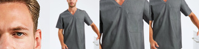 Men’s short sleeve scrub tunic. Comfortable four-way stretch. Breathable, easycare, crease-resistant fabric. V-neck, centre patch pocket with combined pen pocket. Back darts, side vents and modern fit. Decorate with embroidery and/or print. Contains certified recycled polyester.