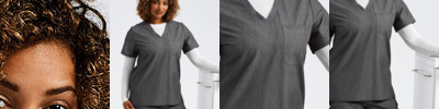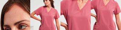 Women’s short sleeve scrub tunic. Comfortable four-way stretch. Breathable, easycare, crease-resistant fabric. V-neck, turn-up sleeves and two front pockets. Back darts, side vents and modern fit. Decorate with embroidery and/or print. Contains certified recycled polyester.
