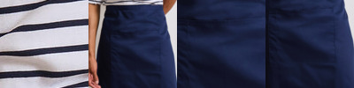 Mid-length waist apron. Tablet-friendly centre pocket with combined pen pocket. Self-fabric ties. Contains certified recycled polyester.