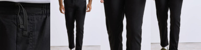 Lightweight chef’s cargo trousers made with certified recycled polyester. Elasticated waistband and drawcord. Mock stitched fly. Two side swing pockets. Welt pocket to the upper right leg with combined pen pocket. Single welt pocket to the reverse with press stud tab for fastening. A tapered fit to the lower leg with optional turn-up hem for styling.