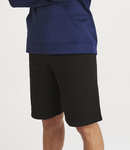 70% ringspun cotton/30% polyester.* Soft cotton faced fabric. Brushed back fleece. Deep ribbed waistband with flat cream drawcord (in transition to be self coloured). Two side pockets. Right rear patch pocket. Tear out label.