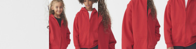 80% ringspun cotton/20% polyester.* Soft cotton faced fabric. Brushed back fleece. Double fabric hood. No drawcord to comply with EU regulations. Full length covered zip. Front pouch pockets. Ribbed cuffs and hem. Twin needle stitching. Tear out label.