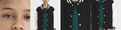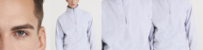Heather grey 65% ringspun cotton/35% polyester. Soft cotton faced fabric. Brushed back fleece. Taped neck with hanging loop. Knitted collar, cuffs and hem with stripe detail. Contrast stud closure. Contrast sleeves. Two welt pockets. Tear out label.