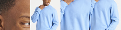 80% ringspun cotton/20% polyester.* Soft cotton faced fabric. Brushed back fleece. Drop shoulder style. Fashion fit. Ribbed collar, cuffs and hem. Taped neck. Twin needle stitching. Tear out label.