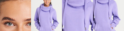 70% ringspun cotton/30% polyester.* Soft cotton faced fabric. Brushed back fleece. Drop shoulder style. Three panel double fabric hood with flat lace drawcord. Crossover neck detail. Front pouch pocket. Ribbed cuffs and hem. Thumbholes on cuffs. Twin needle stitching. Tear out label.