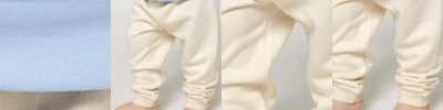The iconic baby jogger pants. Medium fit. Self-fabric, elasticated, grown-on waistband. Narrow twin-needle at waistband base. No side seam for extra comfort. 1x1 rib at bottom leg cuff.