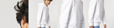 Unisex, relaxed-fit hoodie. Set-in sleeves, dropped shoulders. Droptail hem – curved high front, low back. Ribbed hem cuffs. Single Jersey back neck tape and hood lining. Kangaroo pocket. Tonal topstitching detail. Brand-free, for easy rebranding. Contains recycled cotton and recycled polyester.
