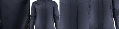 - Front pockets and chest pocket with zippers
