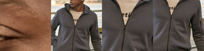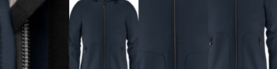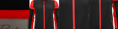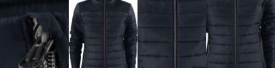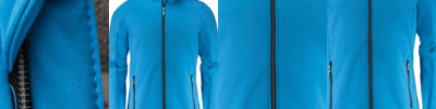 - Two coloured zipper at front and pockets, with zip protection at collar.