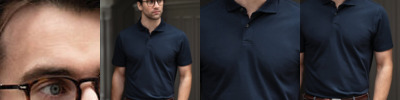 - Bicolour piqué with shorter placket and no buttons