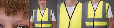 100% recycled polyester (some colours in transition). Bound edges - solid colours have self colour, two tone have contrast. Tear release front closure. Two reflective bands around the body and one over each shoulder. Solid yellow, solid orange, yellow/orange conform to EN ISO 20471: 2013 + A1: 2016 class 2. Black, lime green, navy, purple, paramedic green, red, raspberry, yellow/royal blue conform to EN ISO 20471: 2013 + A1: 2016 class 1. All other colours provide enhanced visibility in all kinds of environments.