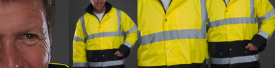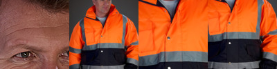 - Two 5cm reflective tape bands around the body, sleeves and one over each shoulder.