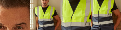 100% recycled polyester. Bound edges - solid colours have self colour, two tone have contrast. Tear release front closure. Two reflective bands around the body and one over each shoulder. Yellow/orange conforms to EN ISO 20471: 2013 class 2. All other colours conforms to EN ISO 20471: 2013 class 1.