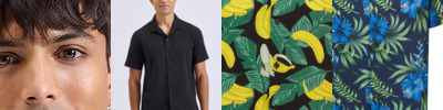 Relaxed fit shirt. Cuban collar. Button front closure. Short sleeves.
