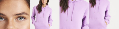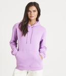 80% organic cotton/20% recycled polyester.* Soft cotton faced fabric. Brushed back fleece. Drop shoulder style. Double fabric hood with self colour drawcord. Front pouch pocket. Ribbed cuffs and hem. Twin needle stitching. Tear out label.
