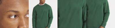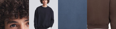 80% organic cotton/20% recycled polyester.* Soft cotton faced fabric. Brushed back fleece. Drop shoulder style. Fashion fit. Ribbed collar, cuffs and hem. Taped neck. Twin needle stitching. Tear out label.