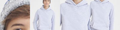 80% organic cotton/20% recycled polyester.* Soft cotton faced fabric. Brushed back fleece. Drop shoulder style. Double fabric hood. No drawcords to comply with EU regulations. Front pouch pocket. Ribbed cuffs and hem. Twin needle stitching. Tear out label.