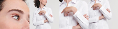 Half moon yoke and side vents. Twin needle stitched around armholes, cuffs and across shoulder seams. Taped back neck. Comfort finish cuff seams. Side vents. Tape reinforced shoulder seams. Slanted placket with women’s fastening.