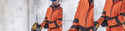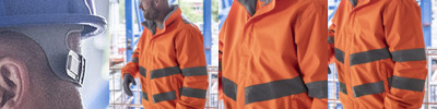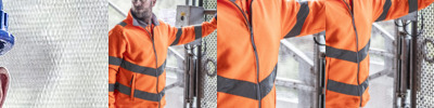 Warm-backed, woven, printable softshell fabric. Certified to EN ISO 20471:2013 A1:2016 Class 3. Orange colourway also conforms to RIS-3279-TOM. Two zipped lower pockets. Made with recycled content. Zip guard for comfort when worn. ID Reflection – angled chevrons inform whether you are facing forwards or away.