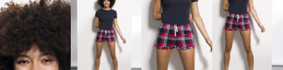 Woven tartan shorts with frill hem. Full elasticated waist with contrast mock drawcord. Tear-out label.