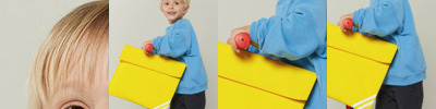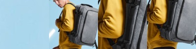 Hi-viz reflective strips, concealed name card holder on the back. Webbing handle.