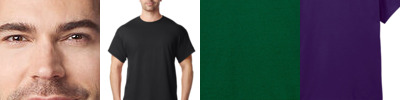 Pre-shrunk jersey. Seamless double needle collar, taped neck and shoulders. Double stitched sleeve and waist hem. Quarter-turned body to eliminate centre crease. Ultra tight knit surface excellent for screenprint and embroidery.