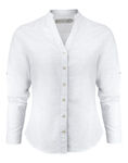 - Linen-blend shirt with Mao collar and adjustable sleeve cuffs