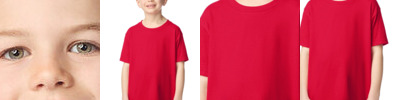 Pre-shrunk jersey. Seamless collar. Double needle top stitched neckline. Taped neck & shoulders. Double stitched sleeve & waist hem. Quarter-turned body to eliminate centre crease. Also available in adult sizes